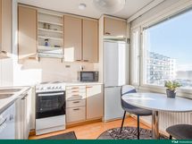 - Jääkaappi/pakastin, sähköliesi, astianpesukoneliitäntä, astianpesukone, kaapistot, liesituuletin. Lattia: Parketti. Seinät: Maalattu