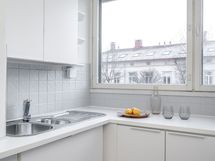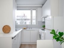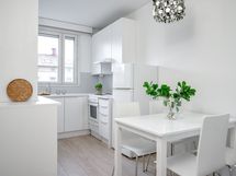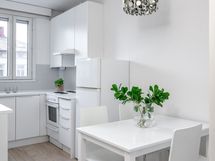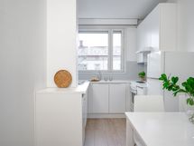 - Vaalea keittiö, jonka varustukseen kuuluu uuni, liesi, liesituuletin ja astianpesukone. Lattialämmitys.