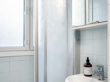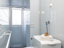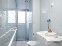 - Pesutilojen kuvaus: Ikkunallisen kylpyhuoneen varustukseen kuuluu suihku, wc-istuin, bidee-suihku, pesuallas, peilikaappi ja pesukoneliitäntä. Lattia ja seinät laattaa. Lattialämmitys.