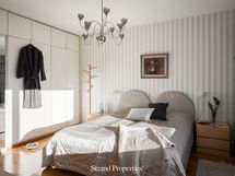 - toimeksiantajan ilmoittama Yhtiöjärjestyksen ja isännöitsijäntodistuksen mukaan pinta-ala on 199m2. Osakkeiden hallinnassa oleva yksiö (n.24m2) erotetaan omaksi osakehuoneistoksi, jolloin nyt myynnissä olevan kokonaisuuden pinta-alaksi jää n.175m2.