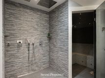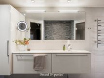 - Pesutilojen kuvaus: Tilava, vuonna 2012 uudistettu SPA-henkinen kylpyhuone höyrysaunalla, kahdella sadesuihkulla, sekä erillisellä ovellisella wc-tilalla. Kivitaso integroidulla altaalla, hana, allaslaatikosto, korkea kaappi, sekä Mielen pesutorni. Suuri peili valoilla ja sähkötoiminen pyyhepatteri.