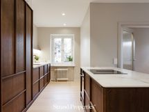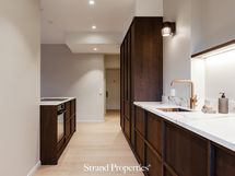 Kodin katseenvangitsija on naantalilaisen puuseppä Wooden toteuttama keittiö, joka edustaa vankkaa suomalaista käsityöosaamista parhaimmillaan. Laadukkaat tanskalaiset kodinkoneet, kätevä aamiaiskaappi ja upeat espanjalaiset keraamiset kivitasot täyttävät vaativammankin ruoanlaittajan toiveet. Kupariset hanat ja pesuallas tuovat viimeisen silauksen tähän upeaan kokonaisuuteen.