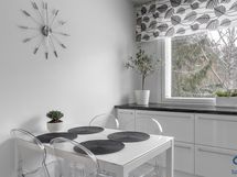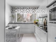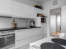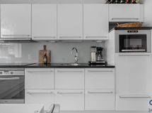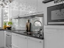 - Kaapistot, jääkaappi, pakastin, astianpesukone (2022), induktioliesitaso (2022), kalusteuuni, liesikupu, integroitu mikroaaltouuni, kivitasot.