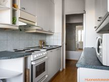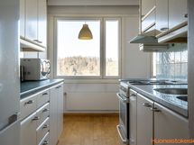 - Keittiön varusteet: Jääkaappipakastin, uuni, liesi ja liesituuletin. Liesi: Sähköhella. Työtason materiaali: Laminaatti.