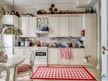 - Keittiön varusteet: Liesituuletin, jääkaappi ja liesi. Liesi: Keraaminen liesi. Työtason materiaali: Laminaatti.