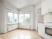 - Työtaso: laminaattitaso. Alkuperäinen keittiö, joka vielä verrattain siistissä kunnossa. Myyjä ei vastaa kodinkoneiden toimivuudesta.