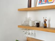 Muuta kauppaan kuuluvaa: Keittiön kiinteät avohyllyt.