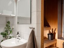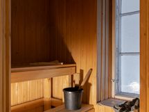 - Kuvaus: Sähkökiuas, seinät paneloitu, laattalattia.