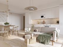 Olohuoneista parvekkeelle kulku on lasiliukuoven kautta. Olohuoneissa parketti.