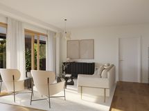 Olohuoneista parvekkeelle kulku on lasiliukuoven kautta. Olohuoneissa parketti.