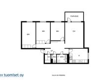 - Pinta-alan peruste: Yhtiöjärjestyksen mukainen ja isännöitsijäntodistuksen mukainen. Ei tarkistusmitattu. Pinta-alat saattavat tämän ikäisissä kohteissa (yhtiö rekisteröity ennen 01.01.1992) poiketa olennaisestikin asuinrakennusten nykyisten mittaustapojen ja standardien (SFS 5139) mukaan laskettavasta asuintilojen pinta-alasta. Pinta-ala voi siis olla edellä mainittua pienempi tai suurempi. ?.