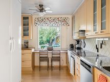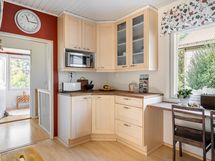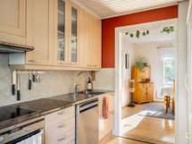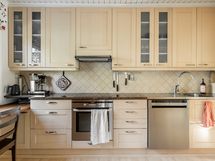 Keittiön varusteet: Jääkaappipakastin, astianpesukone ja liesi. Liesi: Keraaminen liesi.