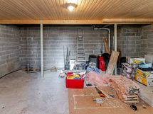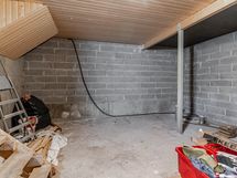 Kellarikerrokseen on mahdollista laajentaa n. 13 m². Kellarikerroksen seinät ovat harkkoa ja katto paneloitu.