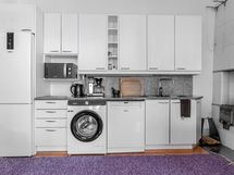 - Keittiön varusteet: Jääkaappipakastin, liesi, kiinteät valaisimet, liesituuletin ja astianpesukone. Liesi: Sähköhella ja puuhella.