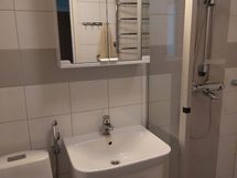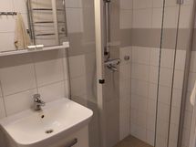 Suihku, Pesukonevalmius, Peilikaappi, Allaskaappi, Rättipatteri, Laattalattia, Laattaseinä