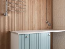 - Pesutilojen varusteet: WC-istuin (seinämalli), suihku, suihkuseinä, pesukoneliitäntä ja lattialämmitys. Pesutilojen kuvaus: Hyväkuntoinen, 2023 LVIS-remontin yhteydessä uusittu, sisustussuunnittelijan suunnitelmien mukaisesti toteutettu, ikkuna sisäpihalle. Erillisten WC:n lukumäärä: 1. Erillisen WC:n varusteet: WC-istuin, lattialämmitys, pesuallas ja allaskaappi. Erillisen WC:n kuvaus: Tilava erillinen wc, jossa ikkuna sisäpihalle.