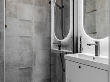 - Pesutilojen varusteet: WC-istuin, suihku, suihkuseinä, peili, pesuallas, allaskaappi, bidee-suihku ja lattialämmitys.