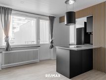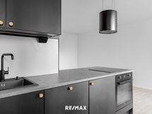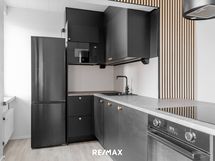 - Keittiön varusteet: Jääkaappipakastin, astianpesukone, pyykinpesukoneliitäntä/valmius kaapistossa, liesituuletin ja uuni. Liesi: Induktioliesi. Työtason materiaali: Laminaatti.