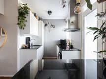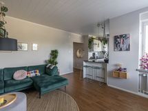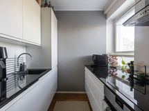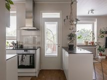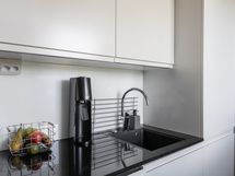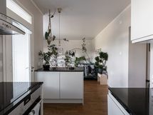 - Keittiön varusteet: Jääkaappipakastin, liesi, erillisuuni, liesituuletin ja astianpesukone. Liesi: Induktioliesi. Työtason materiaali: Kivi.