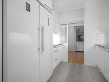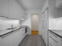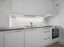 - Keittiön varusteet: Jääkaappipakastin ja astianpesukone. Liesi: Induktioliesi. Työtason materiaali: Laminaatti ja teräsä.