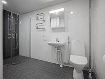- Pesutilojen varusteet: WC-istuin, suihku, lattialämmitys, suihkukaappi, pesuallas ja peilikaappi.