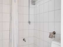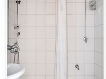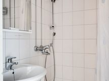 - Suihku, wc-istuin, peilikaappi, pesukoneliitäntä, kuivausteline, lattialämmitys.