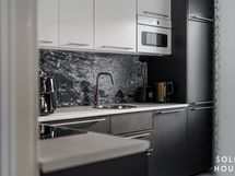 Huoneiston kunto on erittäin siisti. Asuntoon on tehty nykyisen omistajan toimesta laadukas kattava remontti vuonna 2020. Keittiö kiintokalusteineen ja kodinkoneineen sekä pesuhuoneen kalusteet on uusittu, samoin myös kaikki kodin seinä- ja lattiapinnat. Asunnon keittiössä on nyt tyylikkäät kodinkoneet, astianpesukone ja jääkaappipakastin on integroitu kalusteovien taakse. Pesuhuoneen katto, lattia- ja seinäpinnat on uusittu yhtiössä suoritetun laajan linjastosaneerauksen yhteydessä vuonna 2019–2021. Tyylikkäässä kylpyhuoneessa on käyttömukavuutta lisäävä lattialämmitys ja pesukoneliitäntä sekä tilavaraus pyykkikoneelle. Molemmissa makuuhuoneissa on uudet komerokaapistot. Eteiseen on asennettu tilan mitat oivallisesti huomioitu kaunis valkoinen komerokaapistoryhmä laatikostoineen. Tämä kokonaisuus jätetään asuntoon.