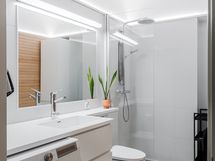 - Pesutilojen varusteet: WC-istuin, suihku, suihkuseinä, pesukoneliitäntä, lattialämmitys, peili, pesuallas, allaskaappi ja bidee-suihku.