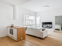 - Keittiön varusteet: Jääkaappipakastin, astianpesukone, erillisuuni, liesi, keittiösaareke, mikroaaltouuni ja liesituuletin. Liesi: Induktioliesi. Työtason materiaali: Puu.