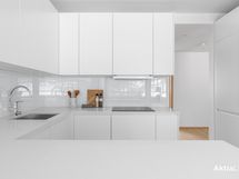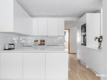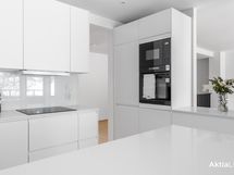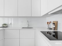 - Liesi: induktio, erillisuuni. Työtasot: muu. Kylmäsäilytys: jääkaappi, pakastin. Varustus: mikroaaltouuni, astianpesukone, liesituuletin / suodatin. Kvartsitasot.