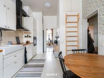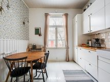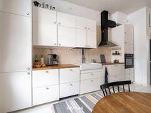 - Keittiön varusteet: Jääkaappipakastin, uuni, liesi, astianpesukone ja liesituuletin. Liesi: Induktioliesi. Työtason materiaali: Laminaatti.