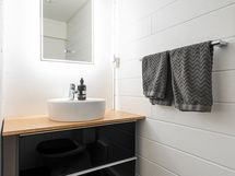 - Pesutilojen varusteet: WC-istuin, suihku, pesukoneliitäntä, suihkuseinä, peili, pesuallas ja allaskaappi. Erillisten WC:n lukumäärä: 1. Erillisen WC:n varusteet: WC-istuin, pesuallas, allaskaappi ja lattialämmitys. Erillisen WC:n kuvaus: 2022 Alakerran wc:n lattian uusiminen. Lattialämmitys asennettu.