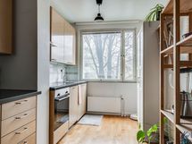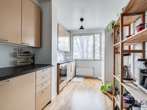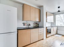 - Kaapistot, induktioliesi, liesituuletin, astianpesukone, jää-/pakastekaappi. Keittiön lattiapinta on parkettia ja seinäpinnat on maalattu. Keittiö on remontoitu 2021