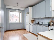 - Läpitalon huoneisto, näkymä yhtiön sisäpihalle ja kadun suuntaan