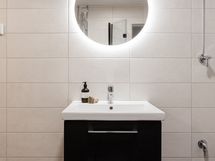 - Pesutilojen kuvaus: Pesuallas, allaskaappi, peili, suihku, suihkuseinä, pesukoneliitäntä. Remontoitu 2025. Erillisen WC:n kuvaus: Wc-istuin, pesuallas, allaskaappi, peili, lattiakaivo. Remontoitu 2025.