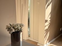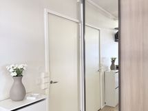 - Tilava kylpyhuone: Suihku, Pesukone, Peilikaappi, Allaskaappi, Laattalattia, kaakeliseinät