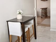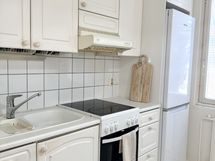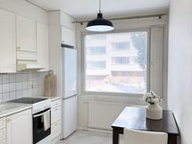 - Astianpesukone, Sähköliesi, Liesituuletin, Jää-pakastinkaappi, Paljon kaappitilaa, kivilattia isoilla laatoilla