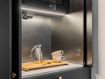- Liesi: induktio, erillisuuni. Työtasot: kivi. Kylmäsäilytys: jääkaappi/pakastin. Varustus: liesituuletin, mikroaaltouuni, astianpesukone, kiinteät valaisimet. Unique Home keittiö aamiaiskaapilla.