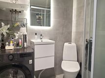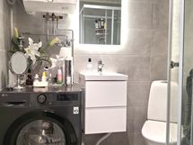 Suihkukaappi, Pesukonevalmius, Laattalattia, Laattaseinä, Lattialämmitys, Allaskaappi