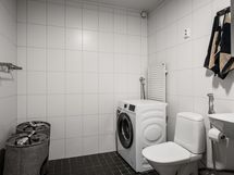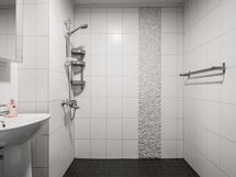 - Kylpyhuone, suihku, peilikaappi, kaapit, pesukoneliitäntä, kiinteät valaisimet.