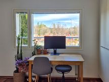 - Ikkunoita itään, Ikkunoita länteen, Parveke ilta-aurinkoon, Olohuone ilta-aurinkoon