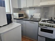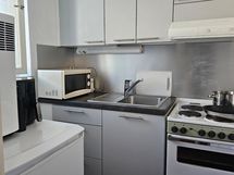 - Keittiön varusteet: Jääkaappi, uuni, liesi ja liesituuletin. Liesi: Valurautaliesi. Työtason materiaali: Laminaatti. Linjasaneerauksen yhteydessä uusittu.
