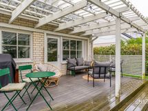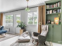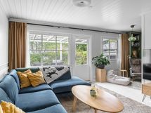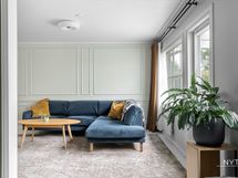 Tämän kodin olohuone on avara kokonaisuus, josta löytyy tilaa ruokaryhmälle, sohvalle ja muulle kalustukselle. Olohuoneen jatkeena monikäyttöinen huone, joka soveltuu vaikka kirjastoksi, TV-huoneeksi tai työhuoneeksi. Huoneeseen saa helposti oven esimerkiksi liuku- tai pariovella ja tällöin huone soveltuu hienosti asunnon kolmanneksi makuuhuoneeksi. Olohuoneesta kulku asunnon terassille. Terassi on osin valokatteella katettu huoneenjatke, jossa viihtyy hyvin keväästä syksyyn. Terassilla hyvin tilaa kalusteryhmille ja grillille.