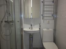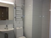 - Lattialämmitys, Peilikaappi, pesukoneliitäntä ja paikka pesukoneelle.
