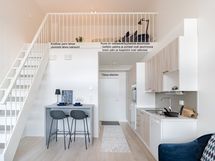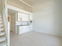 Hei, katso minua! Olen uusi ja upea ylimmän kerroksen yksiö parvella ja isolla länsiparvekkeella, johon olen tilannut sinulle jo valmiiksi lasituksen! Olen valoisa, vaalea ja viihtyisä.
