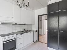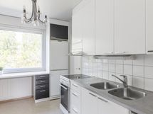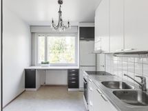 - Liesi: keraaminen. Työtasot: laminaatti. Kylmäsäilytys: jääkaappi/pakastin. Varustus: astianpesukone, liesituuletin / suodatin.