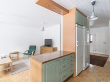 - Liesi: keraaminen. Työtasot: laminaatti. Kylmäsäilytys: jääkaappi, pakastin. Varustus: astianpesukone, liesituuletin / hormi. Keittiö uusittu kodinkoneineen v. 2007.