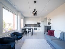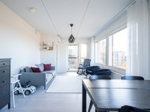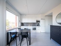 Hyrylän keskustassa 2022 valmistunut valoisa 3. kerroksen kaksio. Lasitettu parveke.