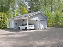 Talon piha on suojaisa ja vehreä, tarjoten tilaa niin leikkeihin, puutarhanhoitoon kuin rentoutumiseen. Pihapiirissä on autotalli, autokatos ja erillinen varasto, minkä lisäksi talossa on poikkeuksellisen runsaasti säilytystilaa eri kerroksissa.