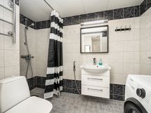 - Pesutilojen varusteet: WC-istuin, suihku, pesukoneliitäntä, pesuallas, allaskaappi, peili, bidee-suihku, pyyhekuivain ja lattialämmitys.